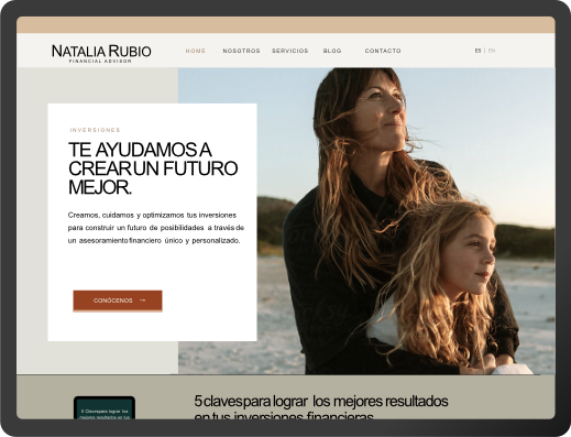- Web – Estructura, diseño, UX y copy.